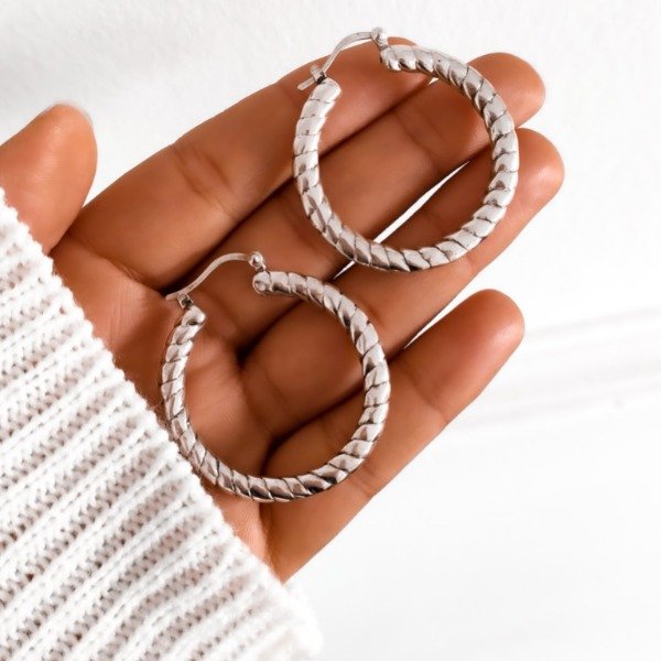 argollas plata inflada, con cierre italiano. 4.0 cm. de diámetro.