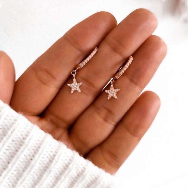 Argollas en plata rosé, con cierre click y microcubics. miden 14 mm.